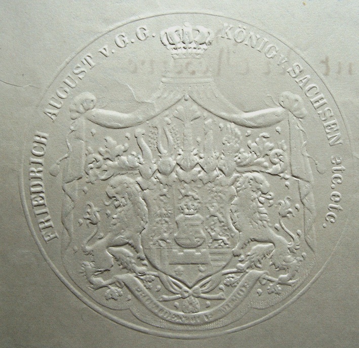 Ein Leutnant-Patent des Infanterie Regiment "König Georg Nr. 106" von 1910, mit Siegel und Unterschrift von Friedrich August, König v. Sachsen. Ähnlich wie es Friedrich August Ose am Ende seiner Dienstzeit erhalten hat. Das Original von ihm ist leider verloren gegangen.